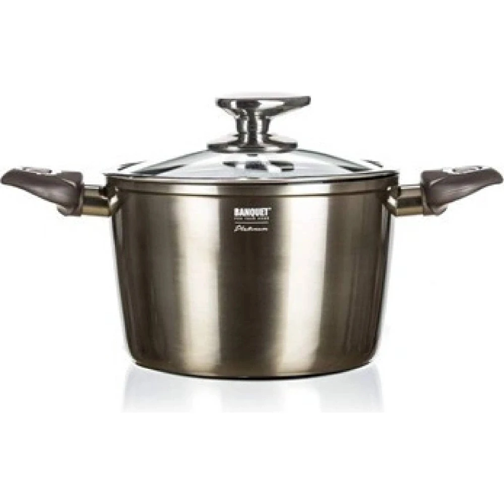 BANQUET Hrnec s nepřilnavým povrchem METALLIC PLATINUM 20 x 13,5 cm, 3,6 l, s poklicí