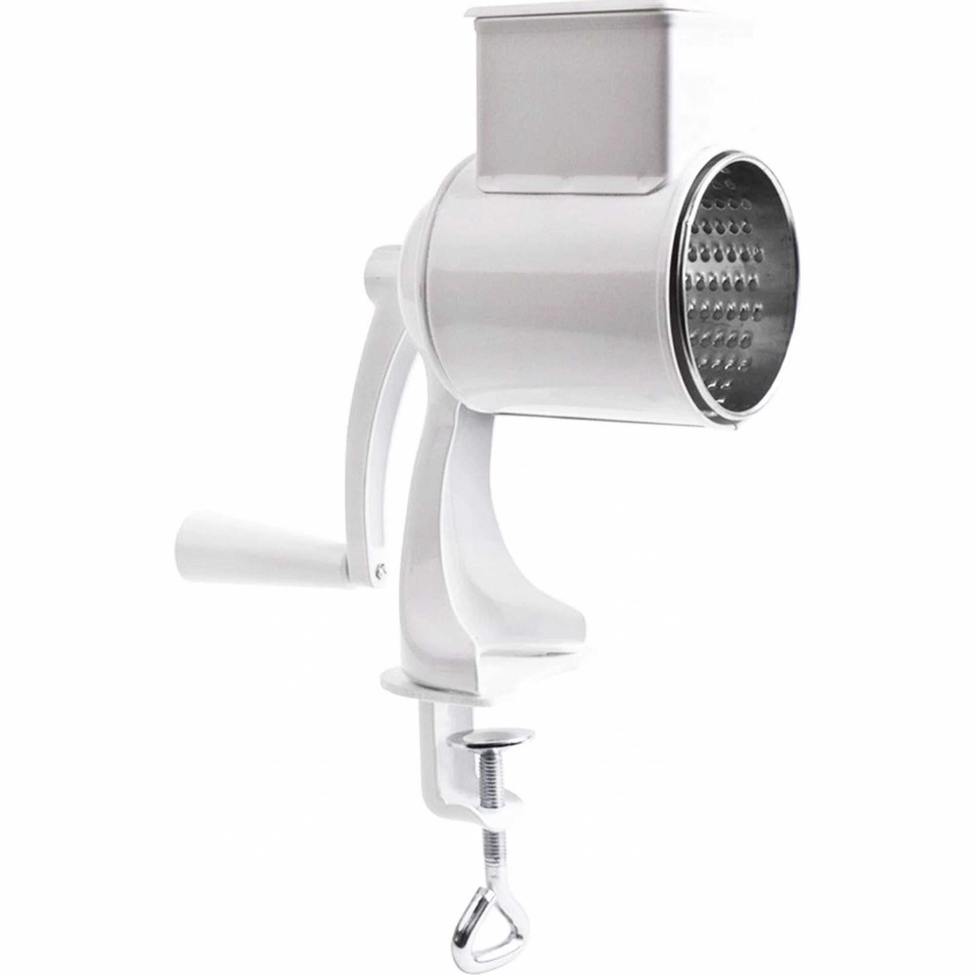 Mlýnek na strouhanku o celkové výšce 30,5 cm, buben z pocínovaného plechu s průměrem 7,5 cm, kovové tělo mlýnku je ošetřeno práškovou barvou v bílém odstínu. Vyrobené v České republice.