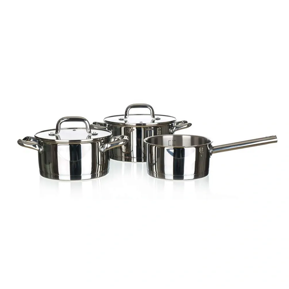 Obsahuje: rendlík 18 x 9 cm, 2.3 l bez poklice, kastrol 18 x 9 cm, 2,3 l se skleněnou poklicí, kastrol 20 x 10cm 3,1 l se skleněnou poklicí.
