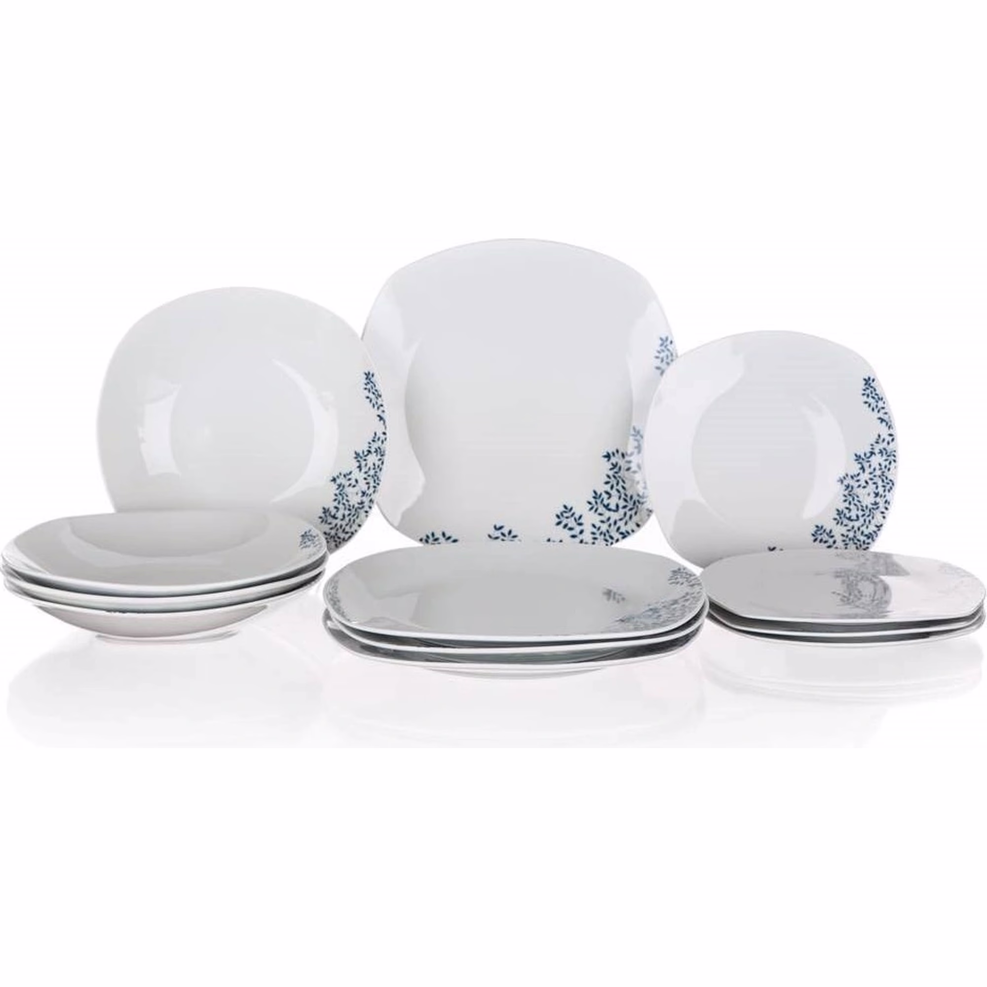 12dílná talířová sada square AGNES se hodí pro každé stolování. Sada obsahuje: 4 x dezertní talíř (diagonála 20 cm, šířka 18,5 cm), 4 x hluboký talíř (diagonála 23 cm, šířka 22 cm), 4 x mělký talíř (diagonála 27 cm, šířka 25 cm), materiál: porcelán. Talíře lze používat do mikrovlnné trouby a mýt v myčce na nádobí.