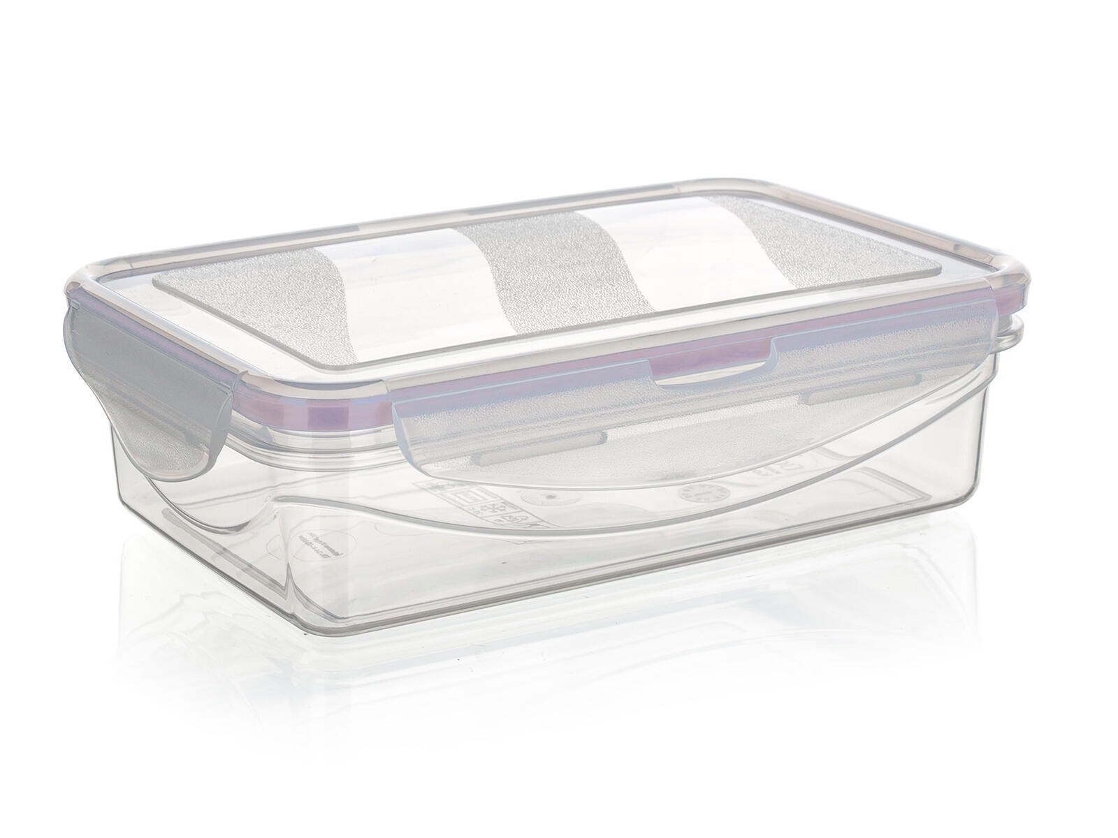 Plastová dóza na potraviny LARA, s růžovým silikonovým těsněním, zajišťuje vzduchotěsnost dózy.