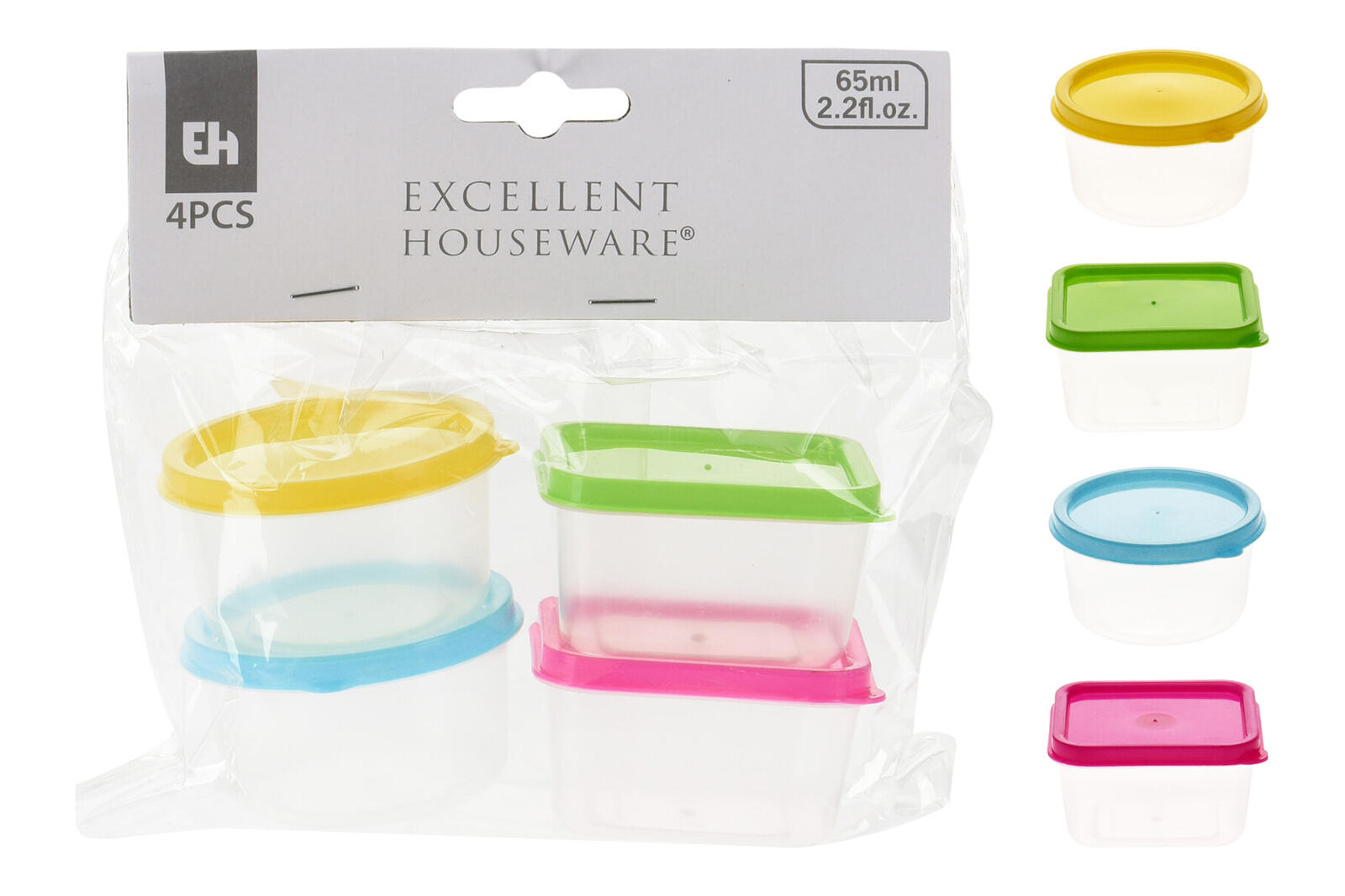 Dóza mini 65 ml, sada 4díl. (2 x kulatá, 2 x čtvercová) PH mix barev.