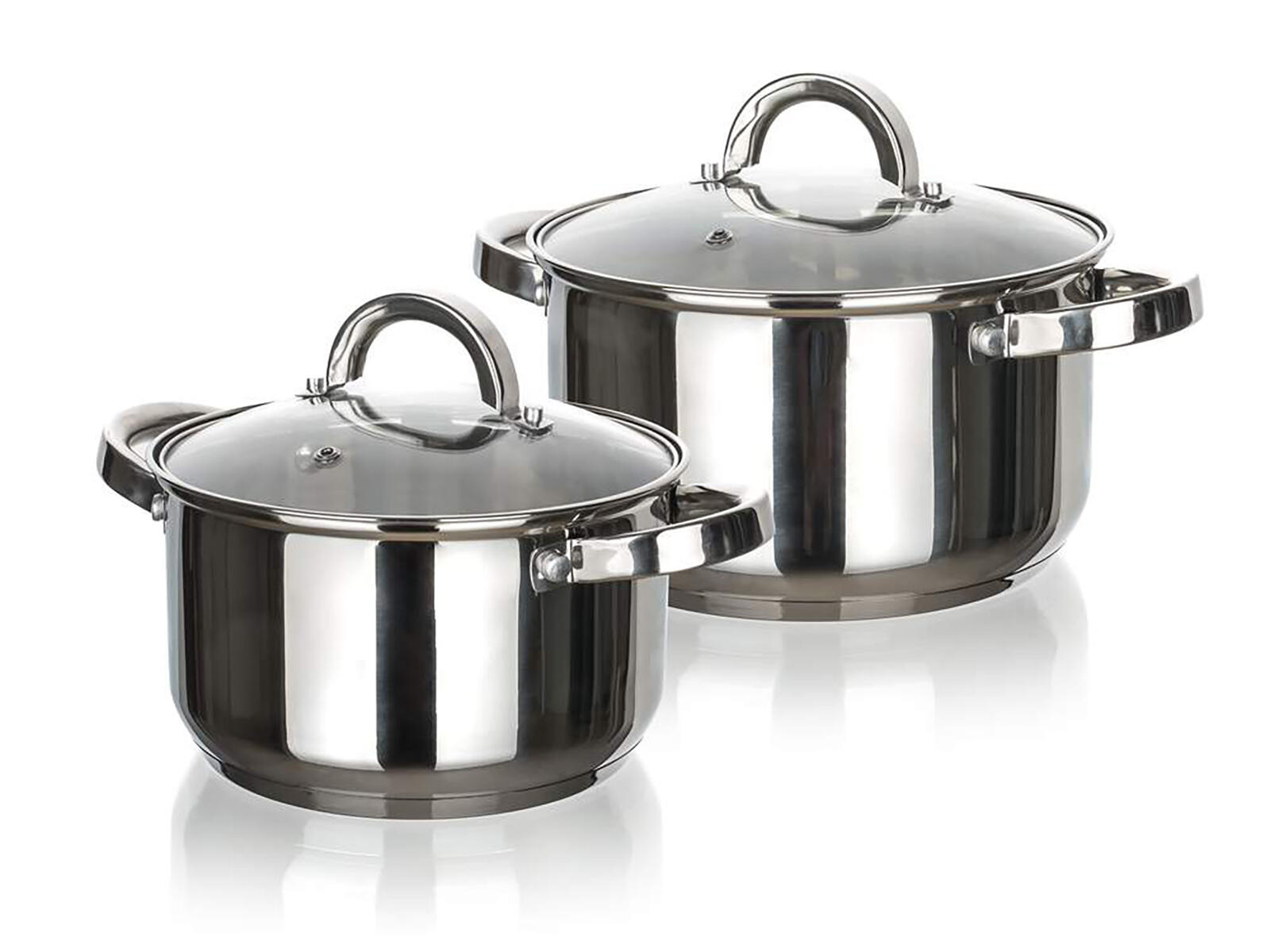Sada nerezového nádobí SWING obsahuje dva hrnce se skleněnou poklicí.
