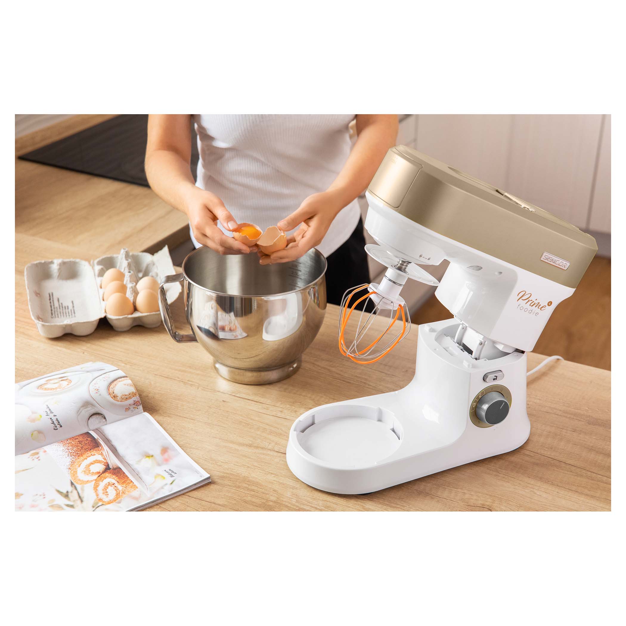 Díky míchací metle ušleháte lehká těsta, polevy, krémy i náplně do dortů. Zvládne přichystat směsi na palačinky, piškotové nebo dortové těsto. Dokonalý výsledek bude hotový za šest minut, pokud nastavíte rychlost tři až čtyři.