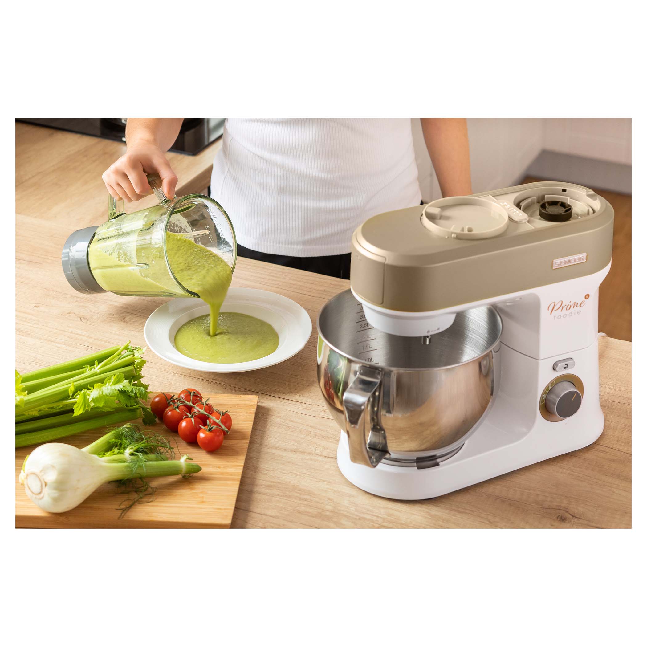 Přidanou hodnotou kuchyňského robotu od Sencor je multifunkční nástavec na mlýnek. S jeho pomocí si připravíte lahodný tatarský biftek, masovou směs do oblíbených burgerů nebo na boloňské špagety. Díky dalšímu nástavci pak hravě naplníte střívka a připravíte domácí klobásy.