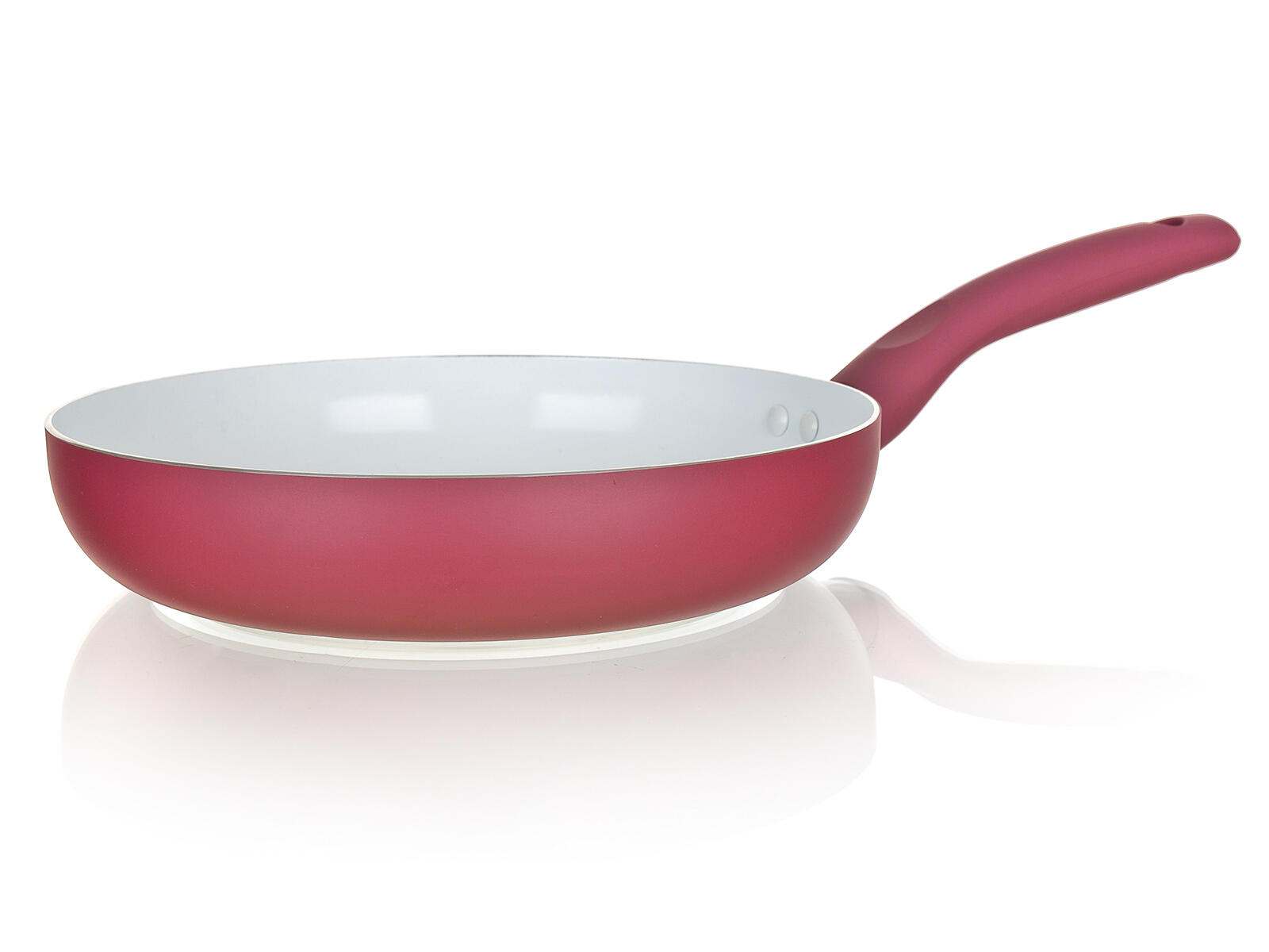 Hliníková pánev INSPIRA s vnitřní povrchovou keramickou úpravou, rukojeť soft - touch ve stejné barvě jako tělo pánve.