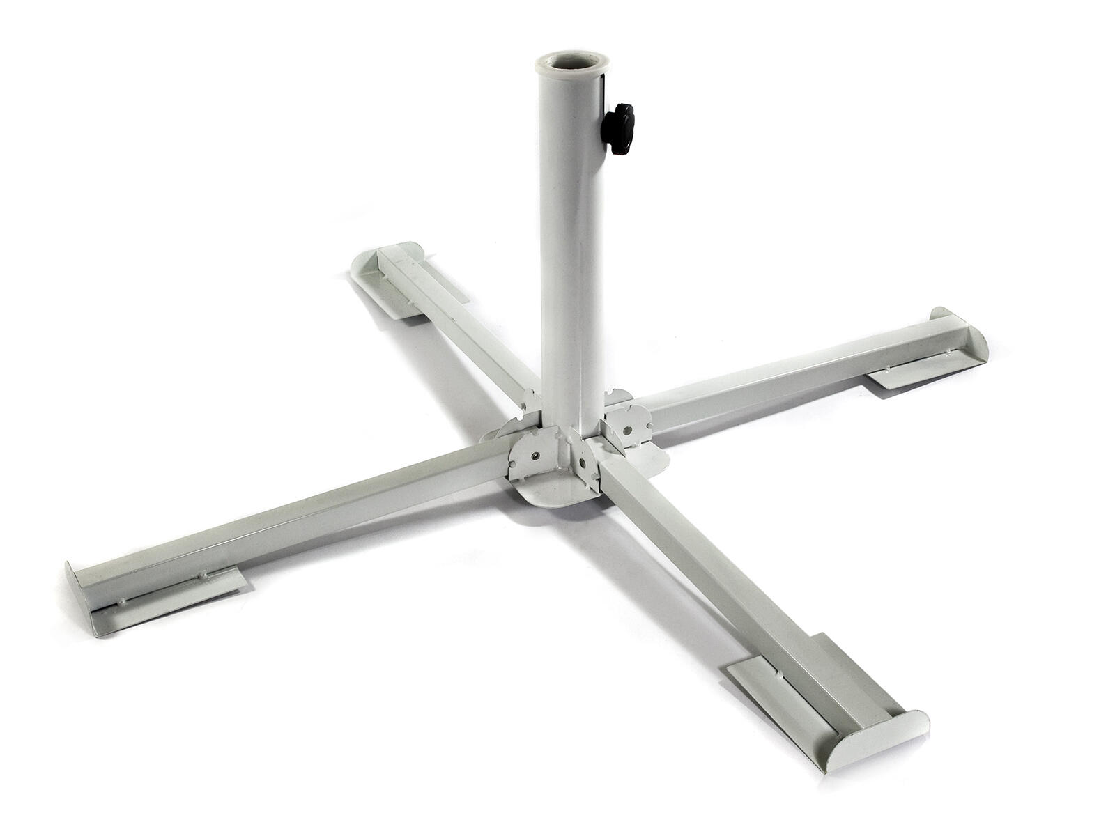 Skládací kovový stojan, s plastovou vložkou, je vhodný na uchycení zahradního slunečníku, venkovního sušáku, nebo jako stabilní ukotvení zahradního altánu.