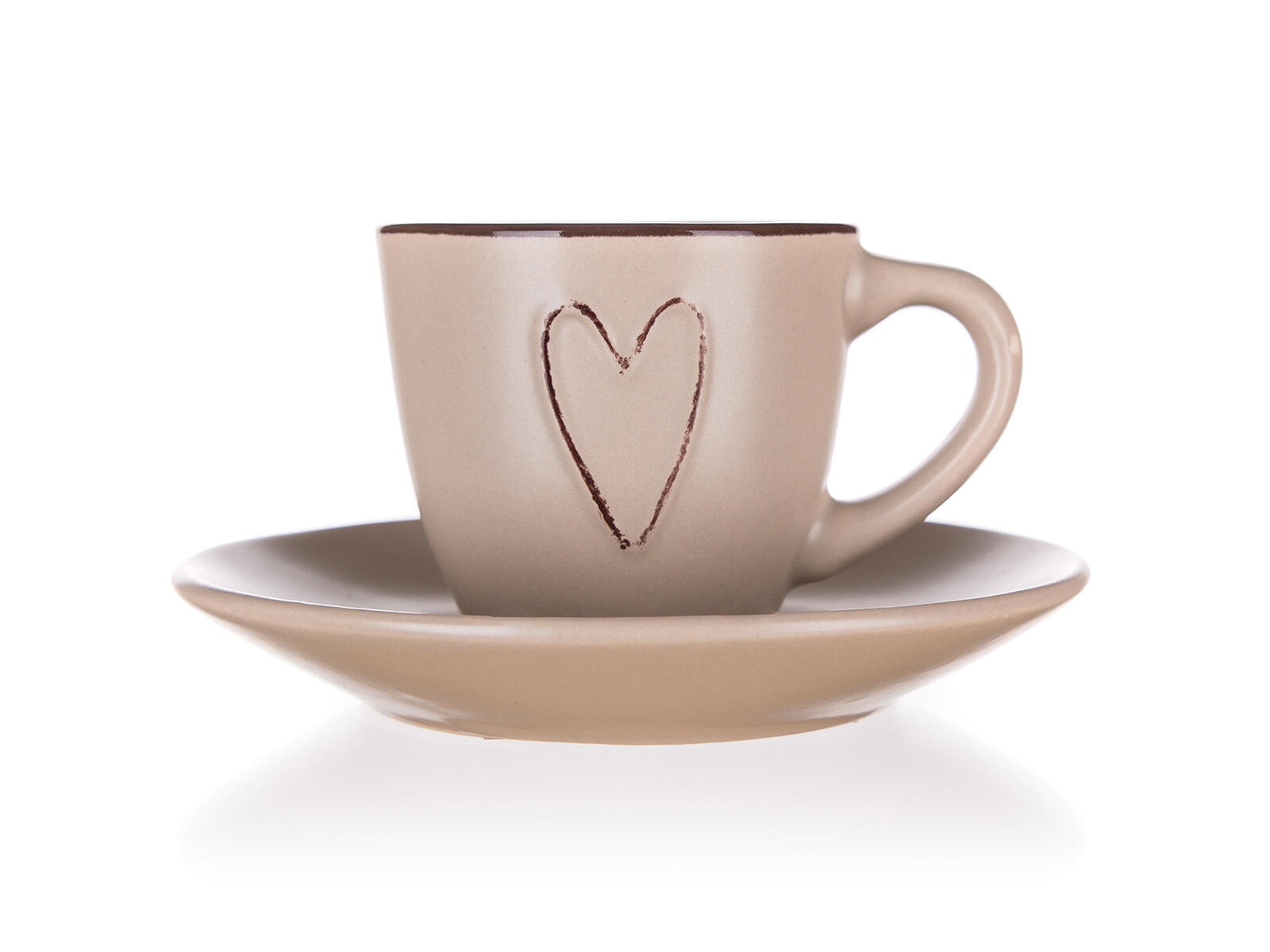 šálek + podšálek 80ml HEART BÉŽ keramickýSkladem70 Kč/ sada58 Kč bez DPH