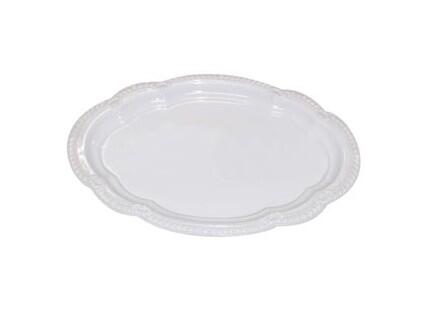 Plastový servírovací tác s ozdobným lemem.