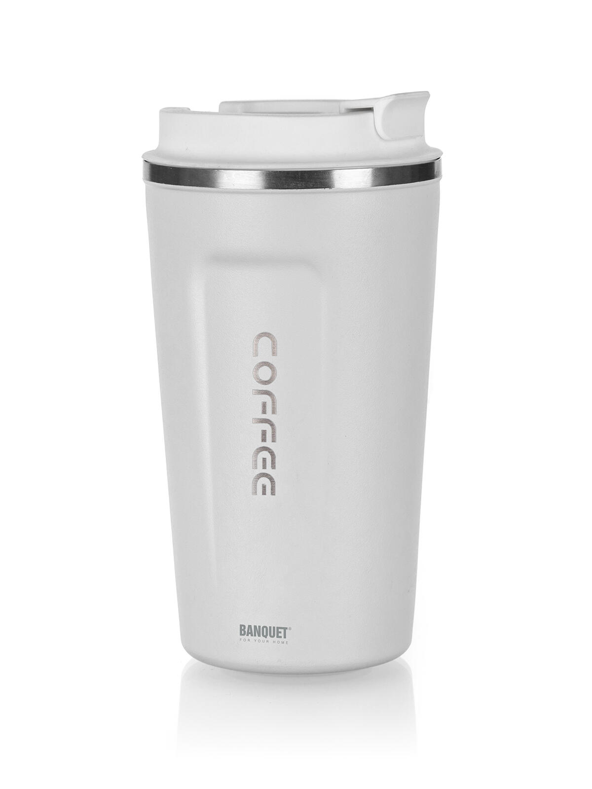 Dvoustěnný cestovní termohrnek ARTY v bílé barvě, je vhodný na teplé i studené nápoje.